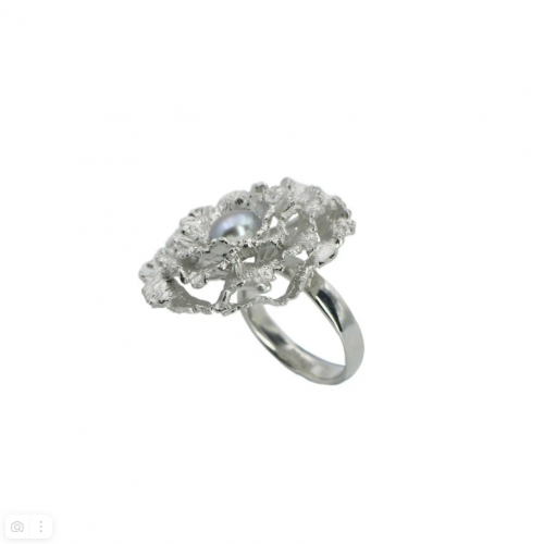 Нежное серебряное кольцо выполнено в форме цветка, сделанного из качественного серебра 925 пробы