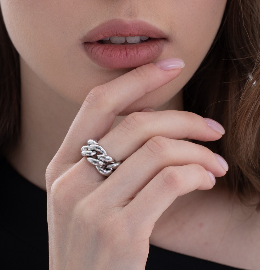 Объемное серебряное кольцо поражает воображение своим дизайном и мастерством исполнения. Оно изготовлено из качественного серебра 925 пробы, что гарантирует стойкость и сохранение первоначальной красоты. За счёт утолщённой формы кольцо кажется массивным, но при этом остаётся удивительно комфортным и удобным в носке. Его современный стиль и оригинальный дизайн позволят превратить обычное кольцо в настоящий арт-объект, подчёркивающий вашу индивидуальность и уникальный стиль. Представлено брендом STILE ITALIANO. В комплект поставки входит: