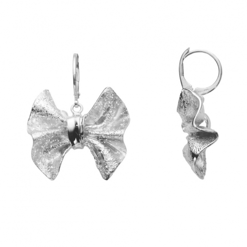 Серьги Fiocchi из серебра 925 с покрытием белым родием — игривые и нежные украшения, сделанные вручную. Они похожи на атласные бантики, подвешенные к петле с застежкой «левербек». Эта конструкция очень надежна и главное — абсолютно безопасна. Такой замок не царапает кожу, им невозможно пораниться, поэтому серьги подойдут для чувствительных мочек. Во время движения аксессуары плавно покачиваются, придавая образу женственности. Поверхность с обработкой «алмазная грань» искрится на свету, как будто покрытая изморозью. Изделия не темнеют благодаря родированию — можно не беспокоится об их внешнем виде. Представлено брендом STILE ITALIANO. В комплект поставки входит: