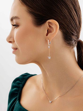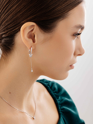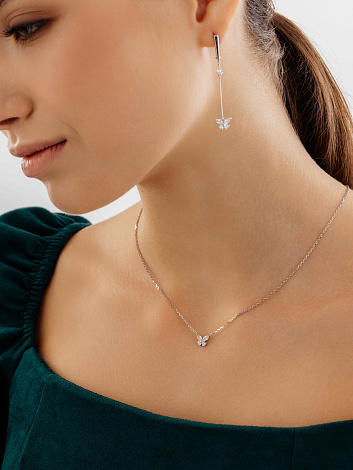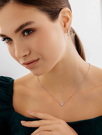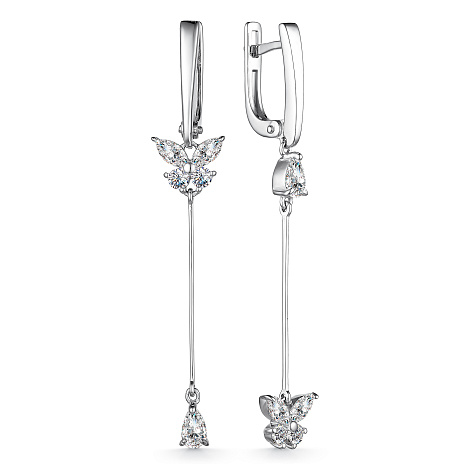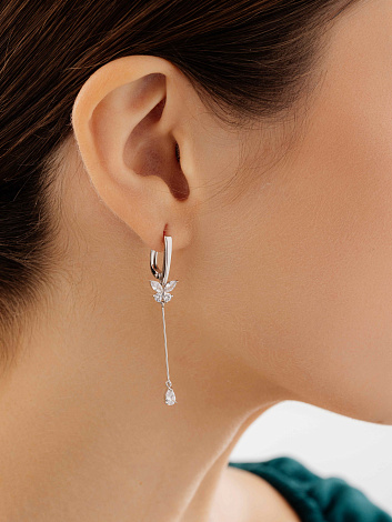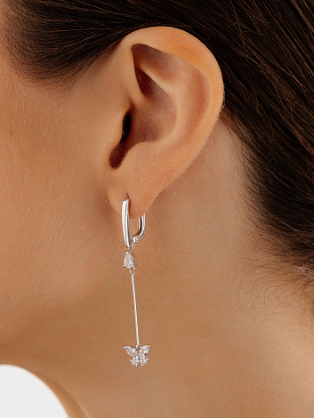 Удлиненные серебряные серьги с подвесами в виде очаровательных бабочек станут истинным украшением вашего образа