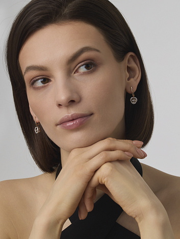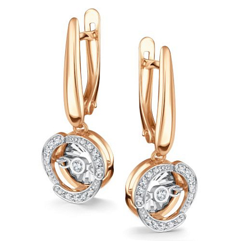 Удлиненные серьги из красного и белого золота с танцующими бриллиантами — это изысканное украшение, которое сочетает в себе элегантность и инновационный дизайн