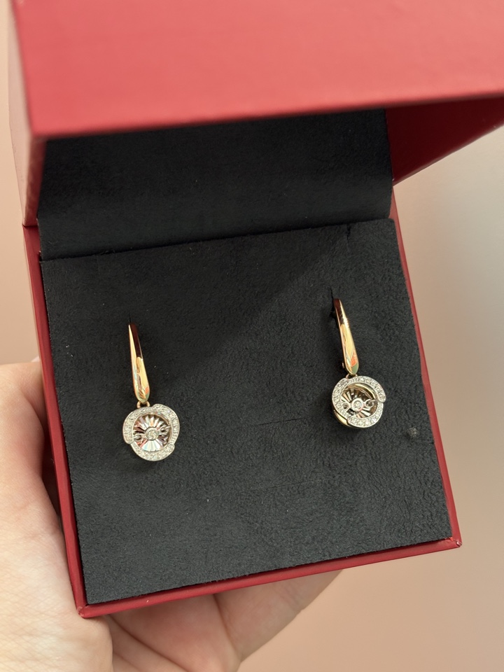 Очень сказочное движения бриллианта, одним словом просто космос ,я очень рад покупке. Красивые, очень продуманный танец бриллианта ,я советую всем мужчинам покупать такие серьги в подарок.