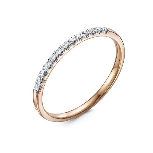 Кольцо, украшенное дорожкой сверкающих бриллиантов, выполнено из красного и белого золота 585 пробы