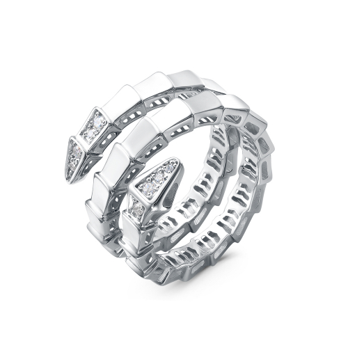 Стильное незамкнутое кольцо выполнено из белого золота 585 пробы, украшено сияющими фианитами