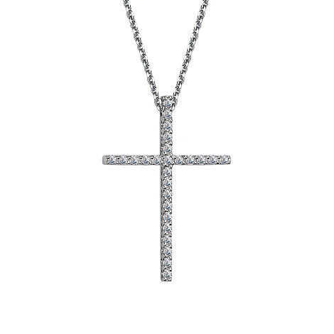 Изящное колье выполнено из первоклассного белого золота 585 пробы и дополнено декоративной подвеской в виде креста, инкрустированного бриллиантами