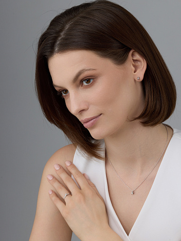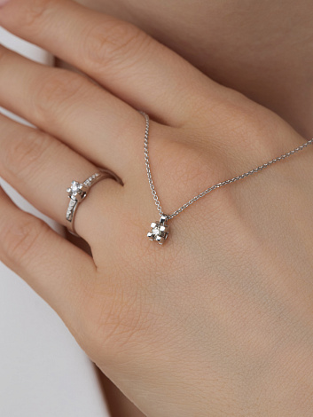 Элегантное цепочное колье выполнено из белого золота 585 пробы и украшено сверкающим бриллиантом, который становится главным акцентом украшения