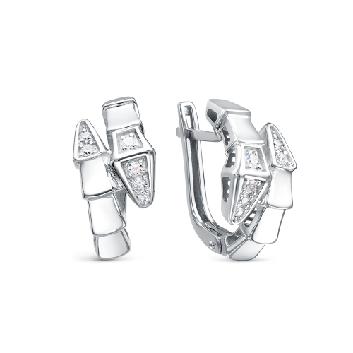 Изысканные серьги из белого золота, выполненные в виде грациозной змеи, украшены сверкающими фианитами, которые придают дизайну утонченность и роскошь