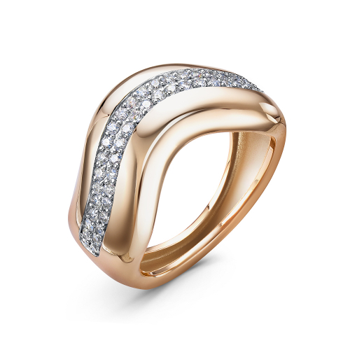 Стильное кольцо выполнено из красного и белого золота 585 пробы, украшено россыпью сияющих фианитов