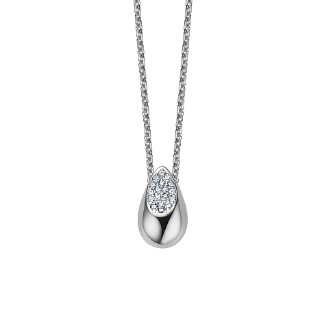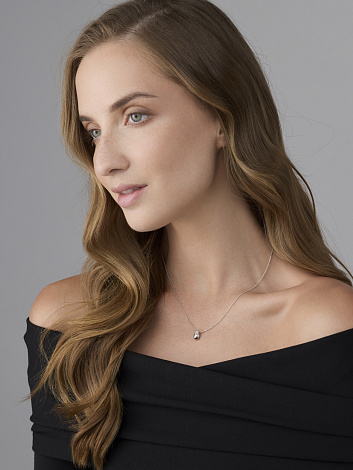 Роскошное цепочное колье выполнено из благородного белого золота 585 пробы и украшено подвесом, сверкающим россыпью бриллиантов