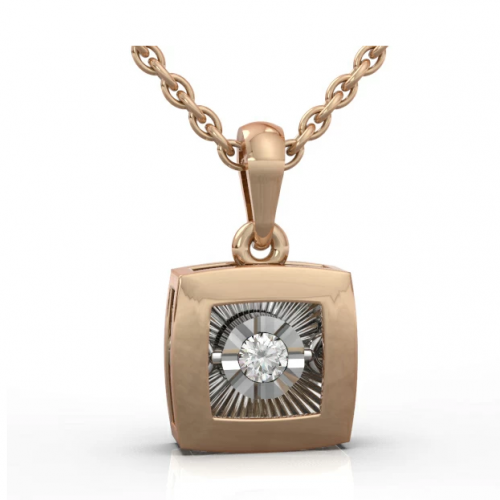 Элегантная подвеска в стиле минимализм выполнена из красного и белого золота 585 пробы, украшенная "танцующим" бриллиантом