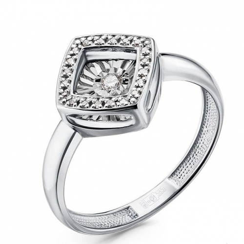 Стильное кольцо из белого золота 585 пробы, в виде ромба с ''танцующим'' бриллиантом в обрамлении сияющих "дорожек" сделает ваш образ блистательным и неотразимым