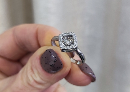 Безумно красивое кольцо! Шикарно играет камень, как живой как-будто. Буду брать еще и серьги! От бренда идет пожизненная гарантия на крепление бриллианта.