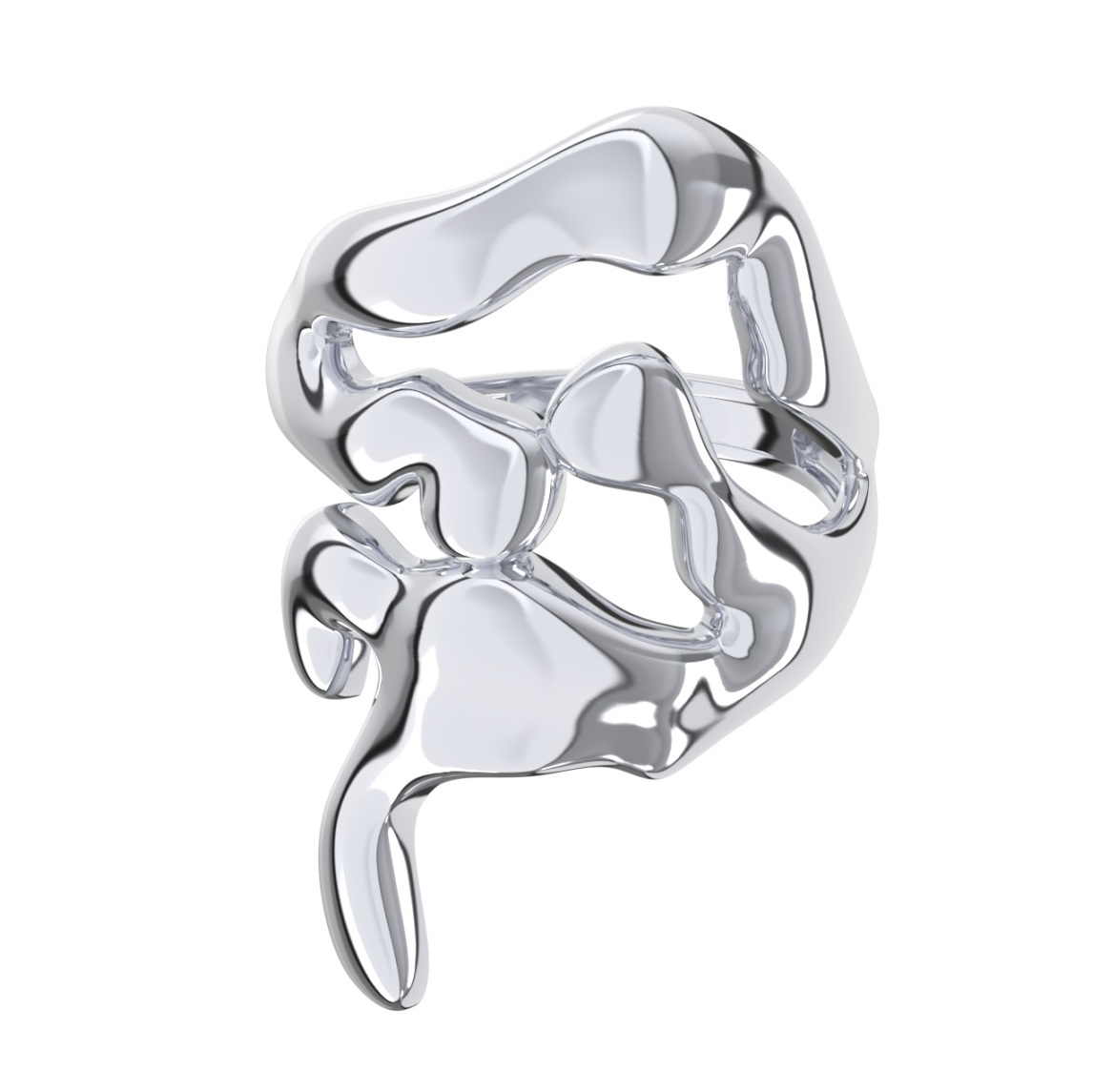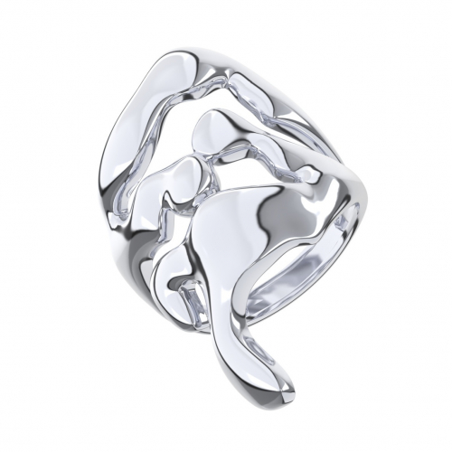Стильное объемное кольцо выполнено из качественного серебра 925 пробы, отличающегося повышенной прочностью и естественным блеском