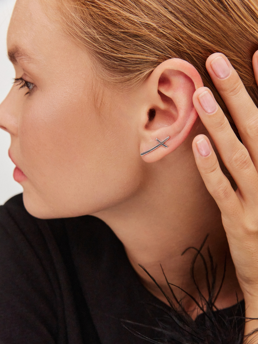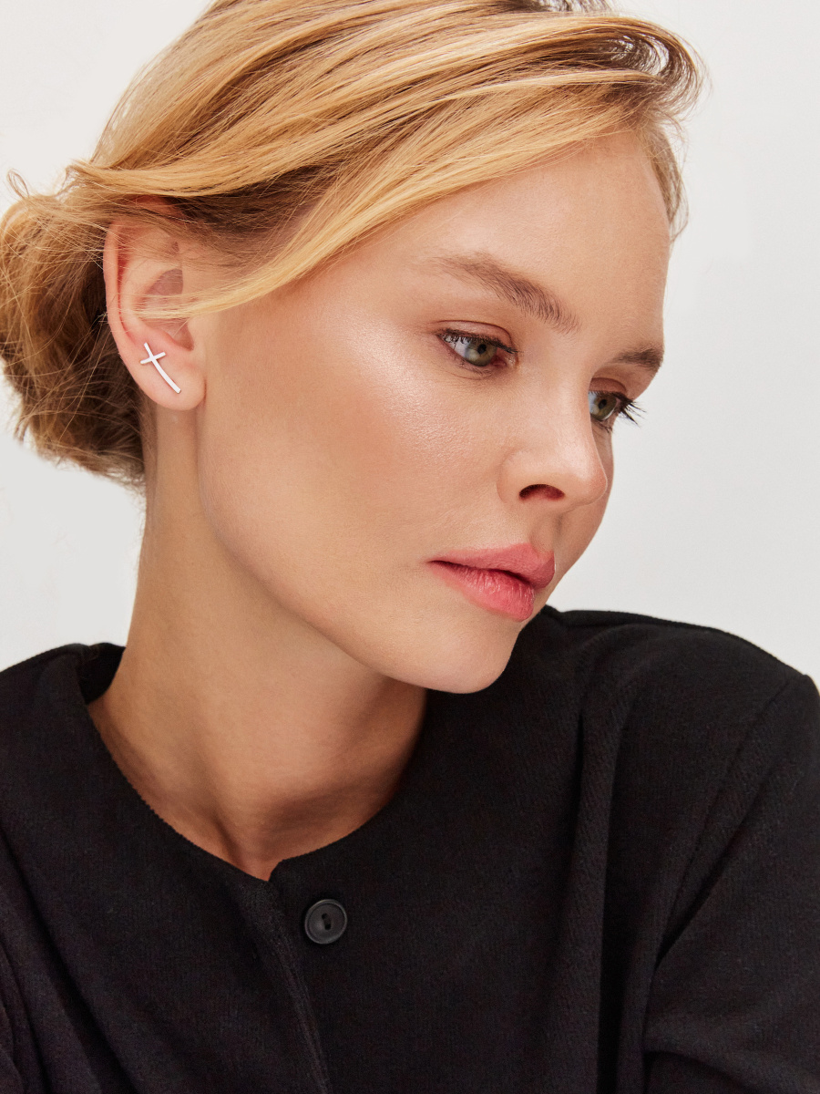 Классические серебряные серьги с крестом выполнены из качественного серебра 925 пробы и предполагают наличие стандартного прокола мочки уха