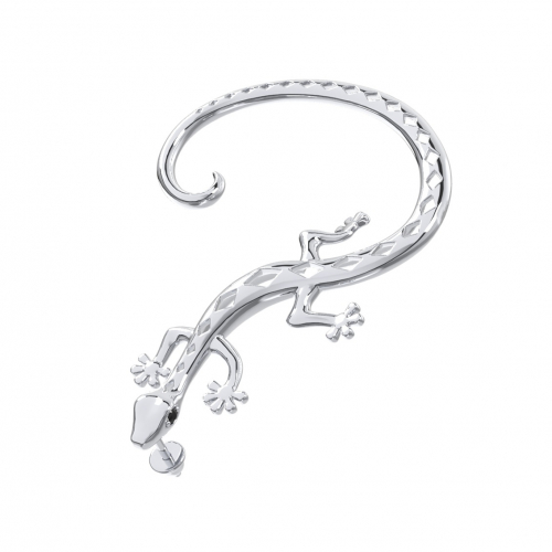 Одиночная серебряная серьга выполнена в виде любопытной ящерицы, изготовленной из качественного серебра 925 пробы