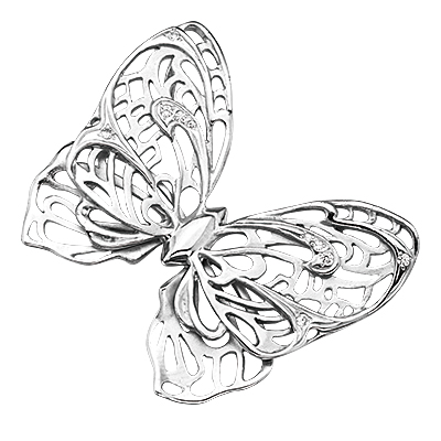 Изящная серебряная подвеска выполнена в виде крупной бабочки-махаона, крылья которой украшены мерцающими фианитами