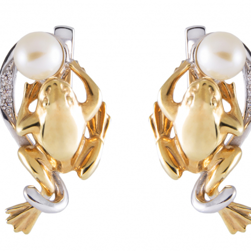 Очаровательные серебряные серьги выполнены в виде симпатичных лягушек, изготовленных из качественного серебра 925 пробы. Они украшены натуральным жемчугом и сверкающими фианитами, что придает им дополнительный шарм и элегантность. Яркий и оригинальный дизайн сразу привлечет внимание окружающих, превратившись в любимый аксессуар, передающий веселый и игривый настрой. Представлено брендом АЛЬДZЕНА. Средняя характеристика камней: 6 Фианитов swarovski, 2 Жемчуга В комплект поставки входит: