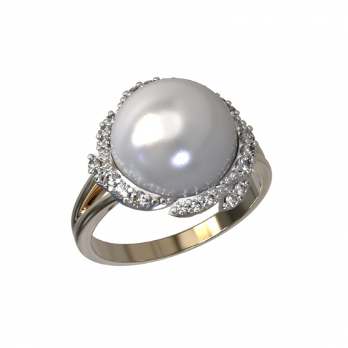 Кольцо, комбинированное золото, жемчуг, проба 585