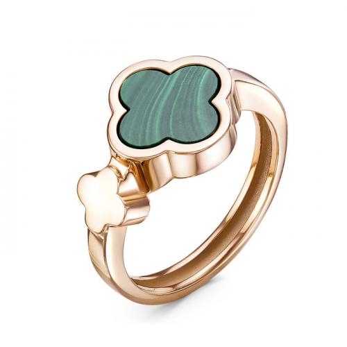 Стильное кольцо с зеленым малахитом выполнено из красного золота 585 пробы