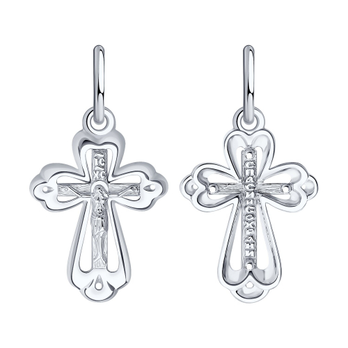 Подвеска в виде нательного креста выполнена из белого золота 585 пробы