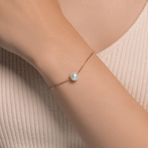 Изысканный браслет из благородного красного золота 585 пробы, украшенный естественным жемчугом, — это украшение, которое сочетает в себе элегантность и природную красоту