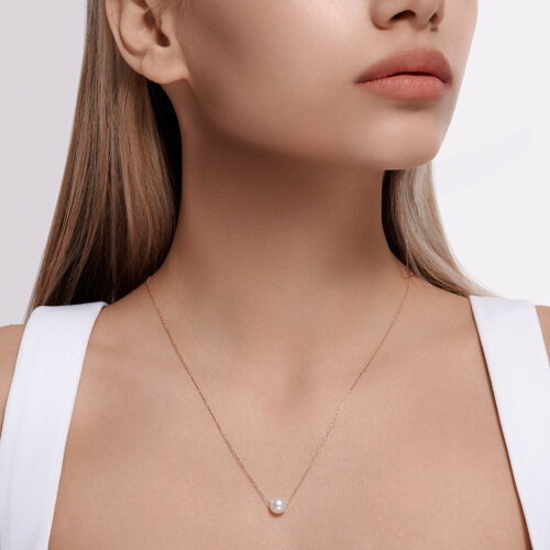 Элегантное колье, выполненное в виде изящной золотой цепи, увенчанной жемчужиной