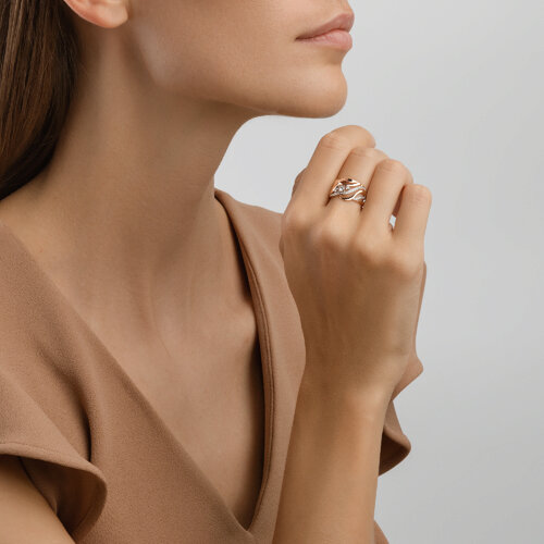 Изящное кольцо сочетает в себе обаятельную игру красных и белых оттенков золота 585 пробы, создавая прекрасный контраст и подчеркивая друг друга