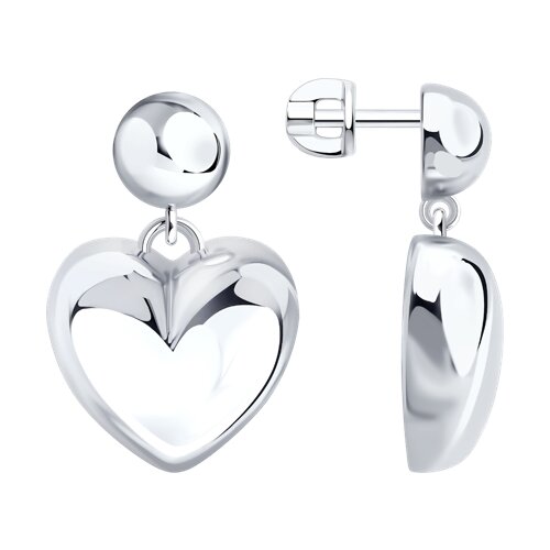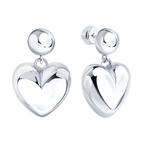 Серебряные серьги-пусеты имеют подвесное сердечко, которое приятно колеблется при движении, добавляя динамики и игривости общему виду. Сделанные из качественного серебра 925 пробы, они легкие и удобные в носке. Сердце расположено близко к уху, и его маленький размер подчеркивает уют и нежность украшения. Простые и практичные, они становятся отличным дополнением к вашим любимым нарядам и личным предпочтениям. Представлено брендом SOKOLOV. В комплект поставки входит: