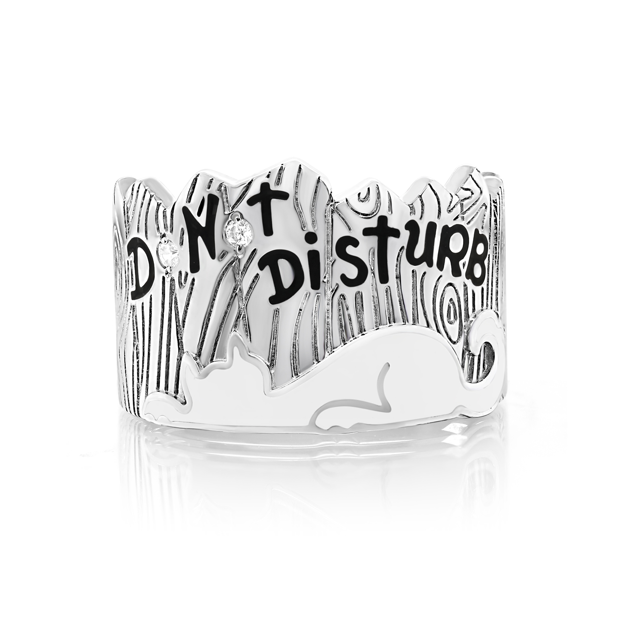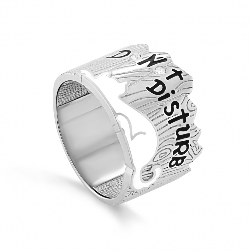 Стильное кольцо из серебра 925 пробы с родиевым покрытием. Родий - драгоценный металл платиновой группы, который делает серебро устойчивым к повреждениям, не вызывает аллергии, не темнеет и дарит искрящийся блеск. Кольцо украшено холодной эмалью и сияющим фианитом. Изделие представлено брендом "Кабаровски". Средняя характеристика камней на артикул: 2 Фианит Круг 1,50 В комплект поставки входит: