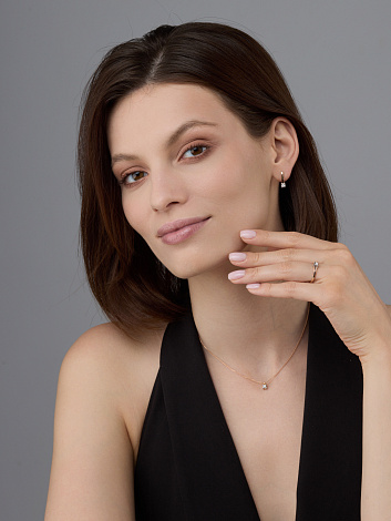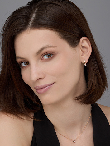 Элегантные серьги выполненые из красного и белого золота 585 пробы украшены сверкающими бриллиантами