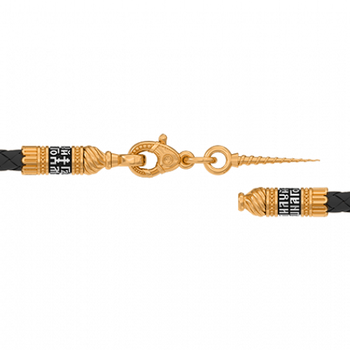 Классный мужской ювелирный гайтан-шнурок черного цвета, идеально подошел для крестика в серебре. Жена подарила, сразу одел на шею, по началу не поняли, как снять концевик, а нужно вывернуть винт и снять ушко, потом на кожаный жгут одеть подвеску или кулон. Шнурок очень модный, прям ювелирный, надпись золотая «Спаси и Сохрани», серебро красивое.