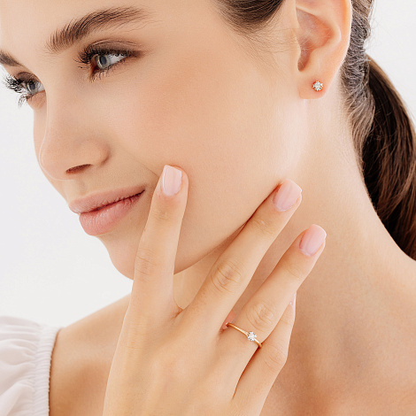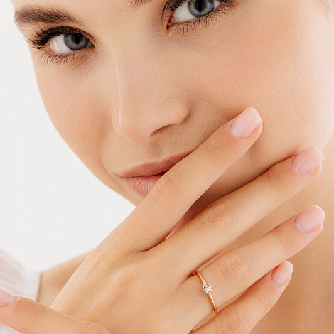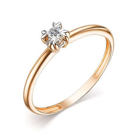 Элегантное кольцо с роскошным сверкающим бриллиантом выполнено из красного золота 585 пробы