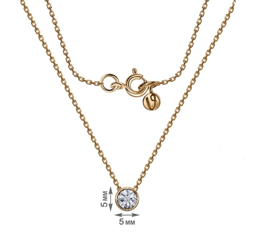 Изящное цепочное колье выполнено из благородного красного золота 585 пробы, украшено великолепным бриллиантом, закрепленным в белой золотой оправе