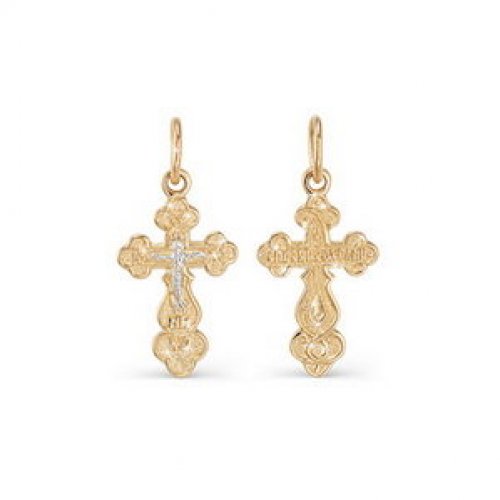 Подвеска - ажурный крест, в котором исполнены все каноны Православной церкви, выполнена в сочетании красного и белого золота 585 пробы