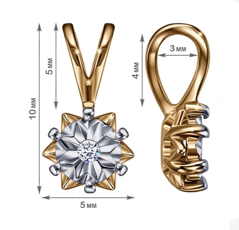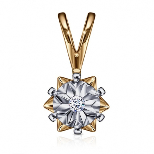 Подвеска, комбинированное золото, бриллиант, проба 585