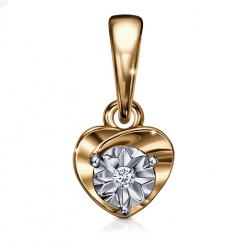 Подвеска, комбинированное золото, бриллиант, проба 585