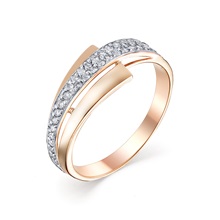 Роскошное кольцо из белого и красного золота 585 пробы украшает россыпь из искрящихся бриллиантов.