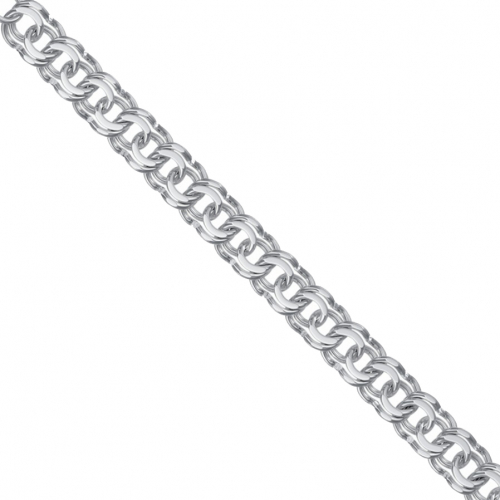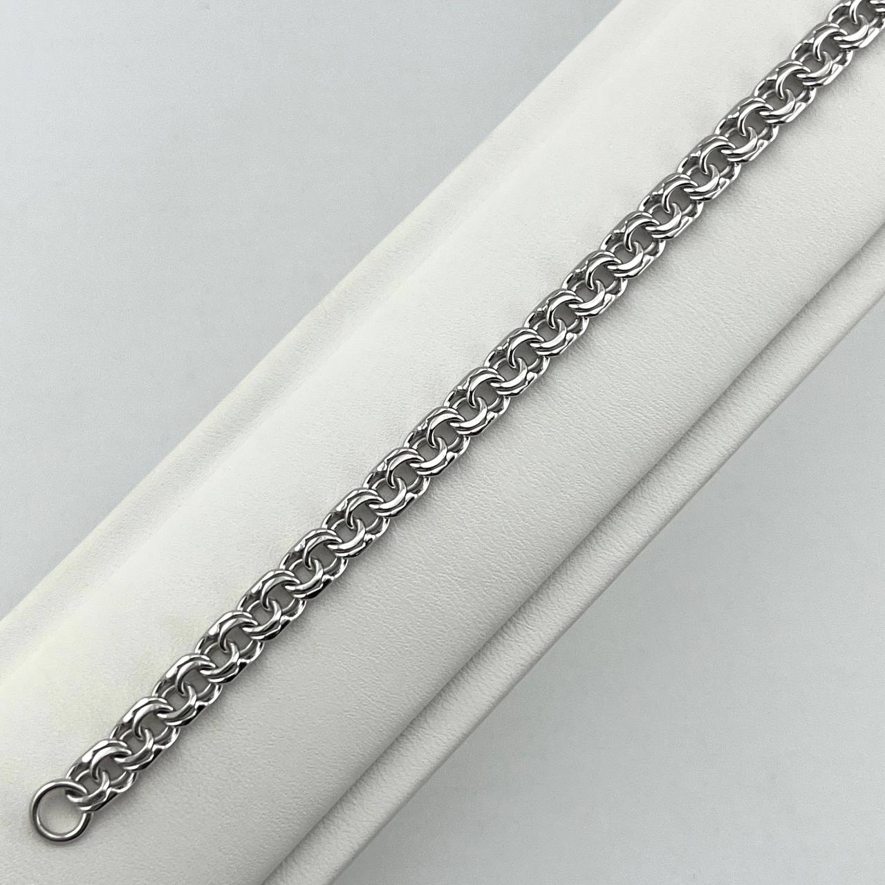 Стильный серебряный браслет выполнен в технике плетения «Бисмарк» из высококачественного серебра 925 пробы