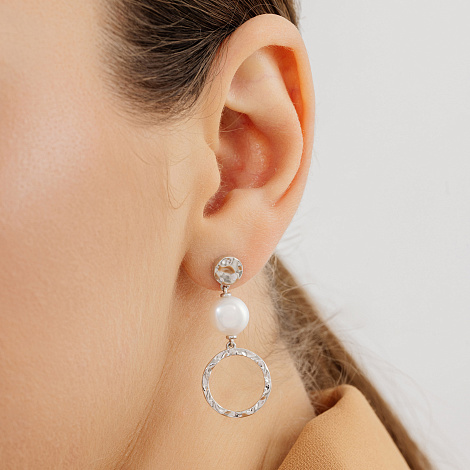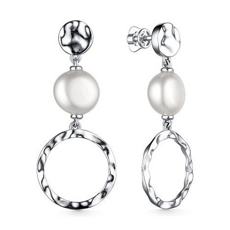 Стильные геометричные серьги выполнены из серебра 925 пробы, украшены нежными жемчужинами