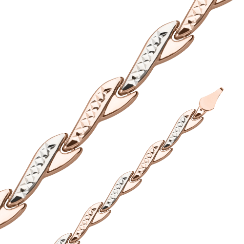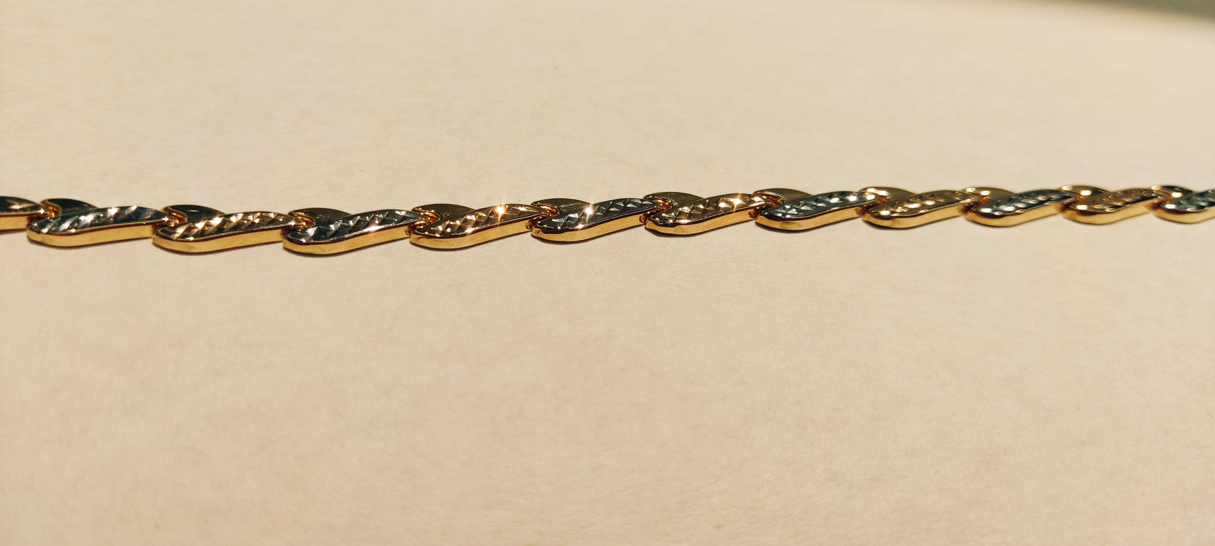 Хочу поделиться своими впечатлениями о потрясающем браслете из комбинированного золота 585 пробы!!!! Сочетание красного и белого золота создает поистине королевский образ, а алмазная грань придает изделию особую изысканность и блеск!!! Первое, что меня поразило – это безупречное исполнение. Алмазная грань выполнена мастерски, каждая грань играет на свету, создавая завораживающий эффект!!!!!