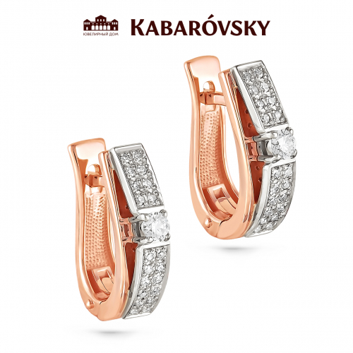 Оригинальные серьги в сочетании красного и белого золота 585 пробы, с бриллиантами, от от Ювелирного Дома «Kabarovsky», каждое украшение которого, как произведение искусства.