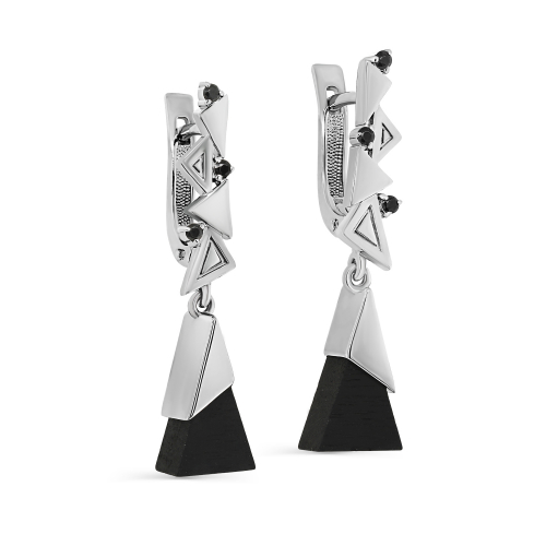 Удлиненные серебряные серьги выполнены из качественного серебра 925 пробы и украшены натуральным деревом дуба-граб и сверкающими фианитами