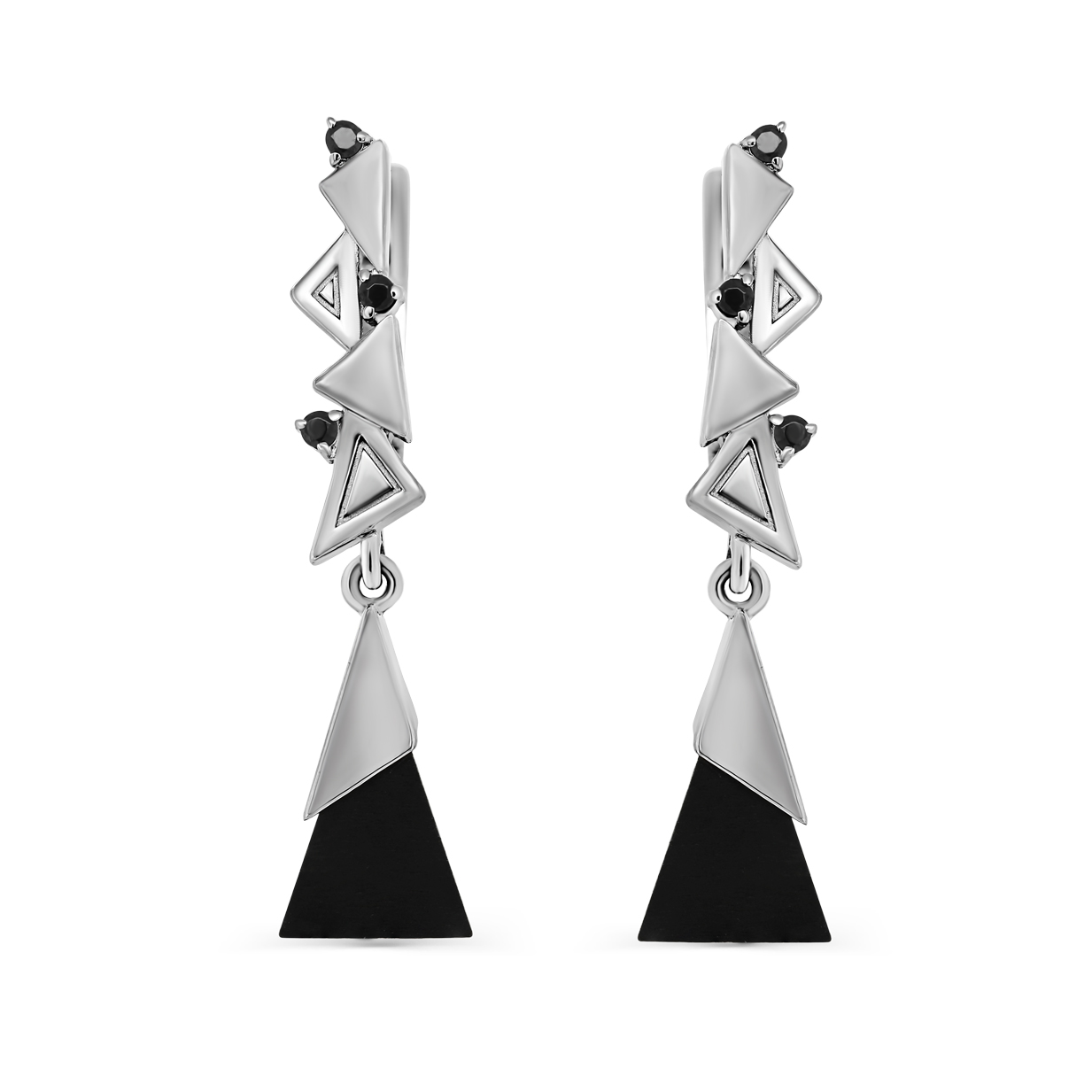 Удлиненные серебряные серьги выполнены из качественного серебра 925 пробы и украшены натуральным деревом дуба-граб и сверкающими фианитами