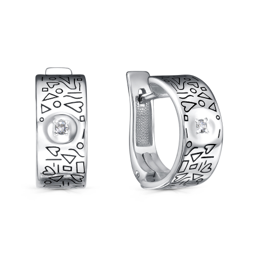 Элегантные серебряные серьги с бриллиантами выполнены из качественного серебра 925 пробы и украшены изысканными узорами