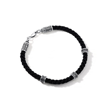 Стильный браслет выполнен в виде шнура с элементами из качественного серебра 925 пробы