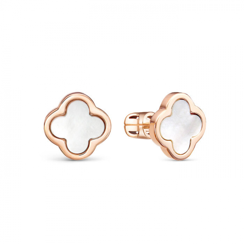 Нежные серьги - пусеты в виде цветка с перламутром, выполнены из красного золота 585 пробы
