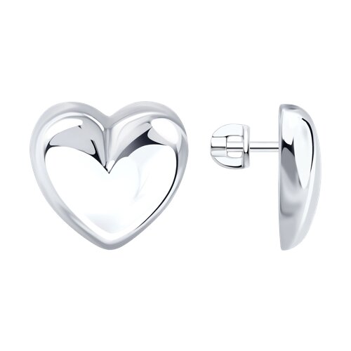 Элегантные серебряные серьги-пусеты выполнены в форме сердец из качественного серебра 925 пробы
