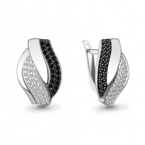 Стильные серебряные серьги выполнены из качественного серебра 925 пробы и украшены черными нанокристаллами и сверкающими белыми фианитами