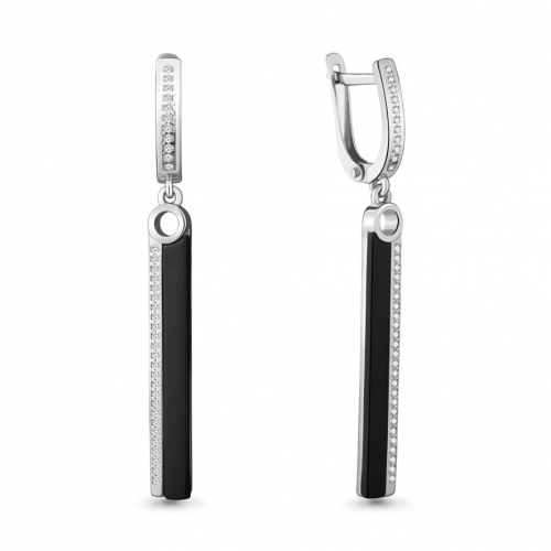 Удлиненные серебряные серьги выполнены из качественного серебра 925 пробы и украшены черной керамикой и сверкающими фианитами
