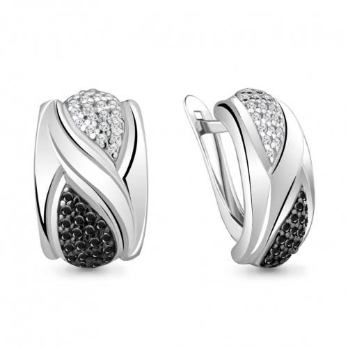 Серебряные серьги с чарующим сочетанием черных нанокристаллов и белых фианитов на классическом английском замке — это идеальное украшение для тех, кто ценит элегантность и утонченность